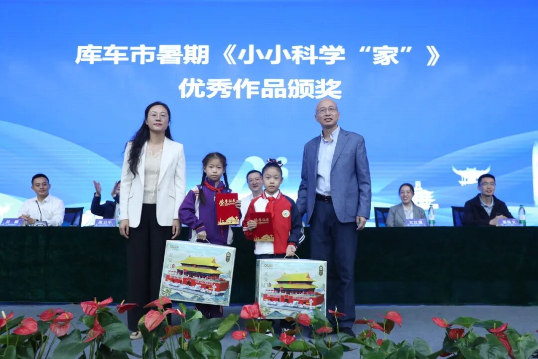 仪式现场,与会嘉宾还为暑期参加“小小科学‘家’”特色科教活动的七位库车获奖学生举行了颁奖仪式,鼓励他们从小种下探秘科学的火种。