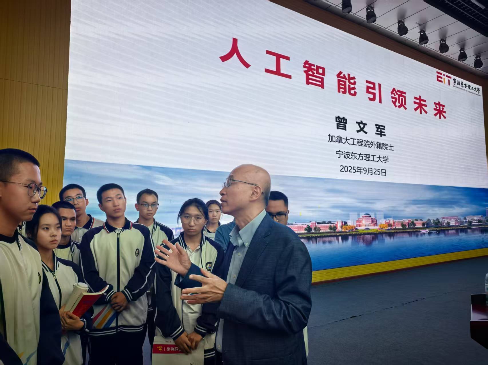 近日,应宁波市教育局、市援疆指挥部邀请,我校副校长、加拿大工程院外籍院士曾文军远赴新疆,出席“甬库同心·科普筑梦”首届甬库科普季活动,并为库车市第二中学现场1200多名高三学生带来了一场关于人工智能的前沿科普讲座。