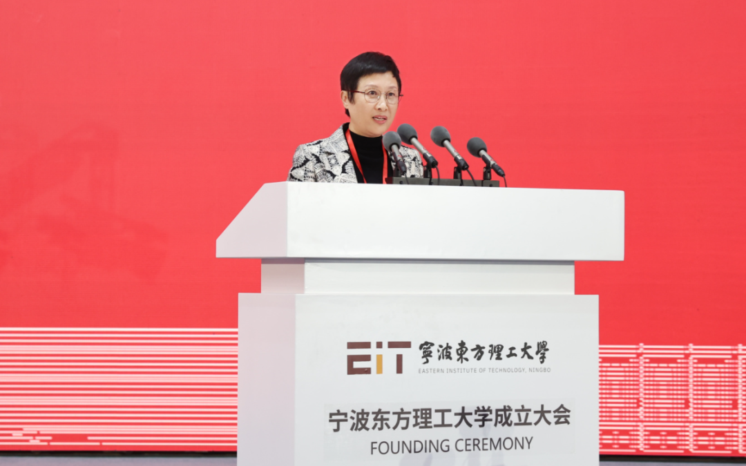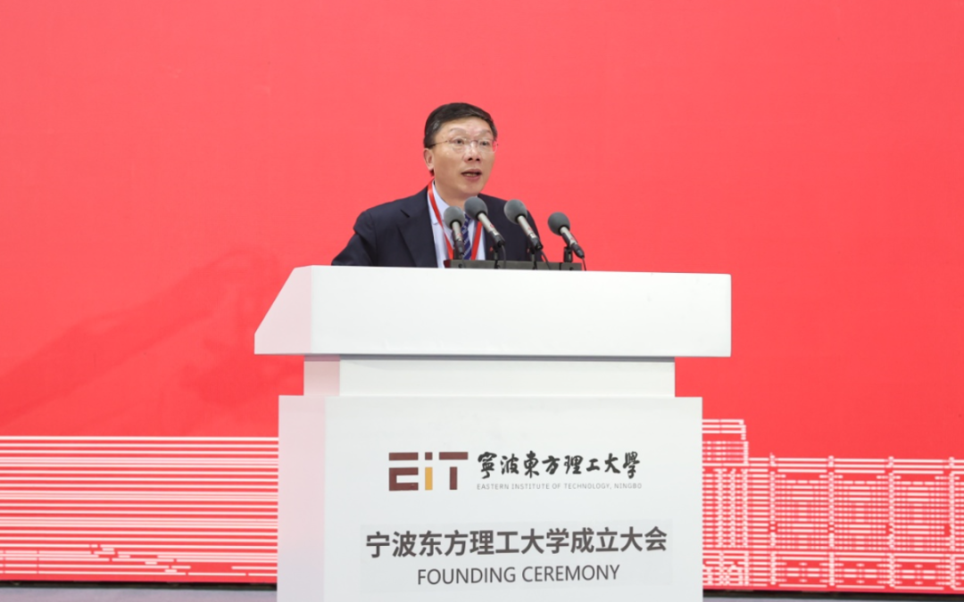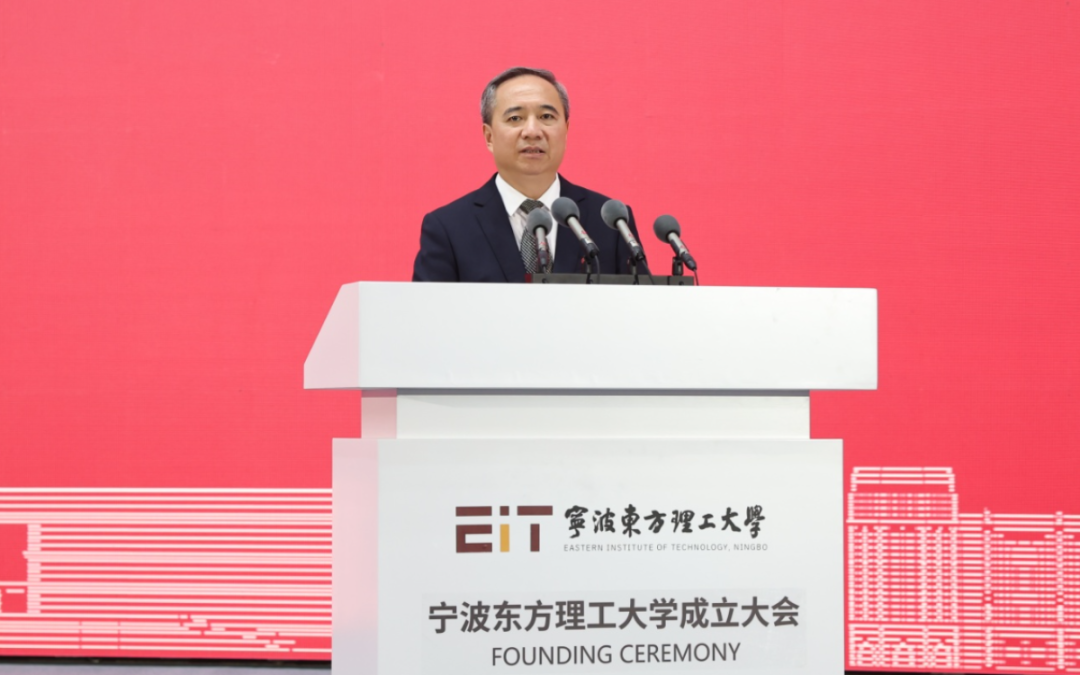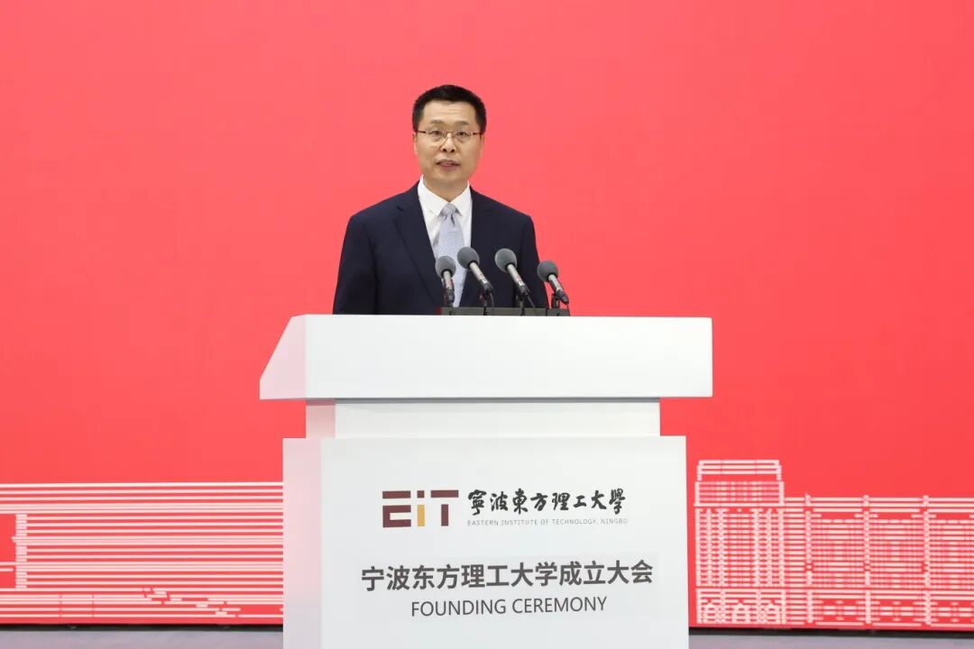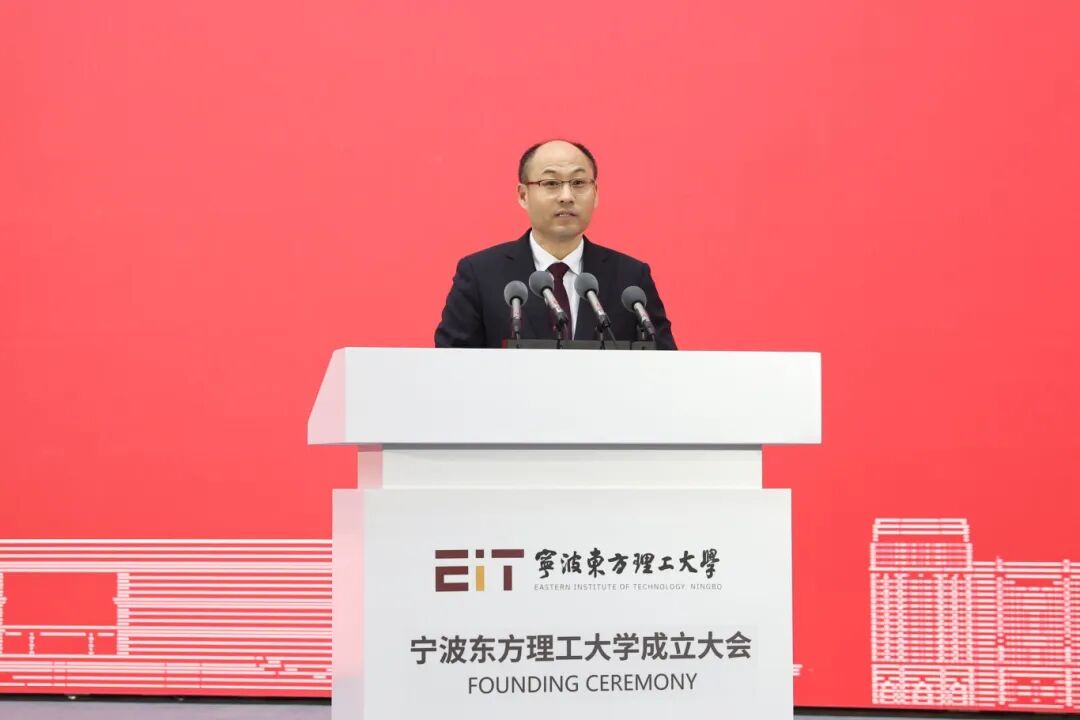 第十四届全国人大常委会副委员长、民盟中央主席、中国科学院院士丁仲礼,浙江省委副书记、宁波市委书记王成,浙江省副省长、省委教育工委书记卢山,宁波市委副书记、市长汤飞帆,浙江省教育厅党组书记、厅长陈春雷,东方理工董事会主席虞仁荣,宁波东方理工大学校长、中国科学院院士陈十一,共同为宁波东方理工大学成立揭牌。汤飞帆主持成立大会。
