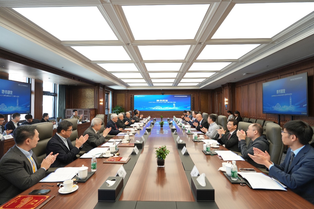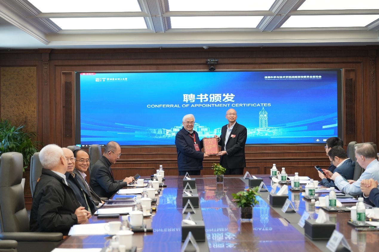 曾文军详细介绍了学校办学情况,以及信息学部在学科布局、师资建设、科研创新等方面的阶段性成果。会议举行了委员聘任仪式,曾文军为委员颁发聘书,郑纬民受聘担任委员会主任。