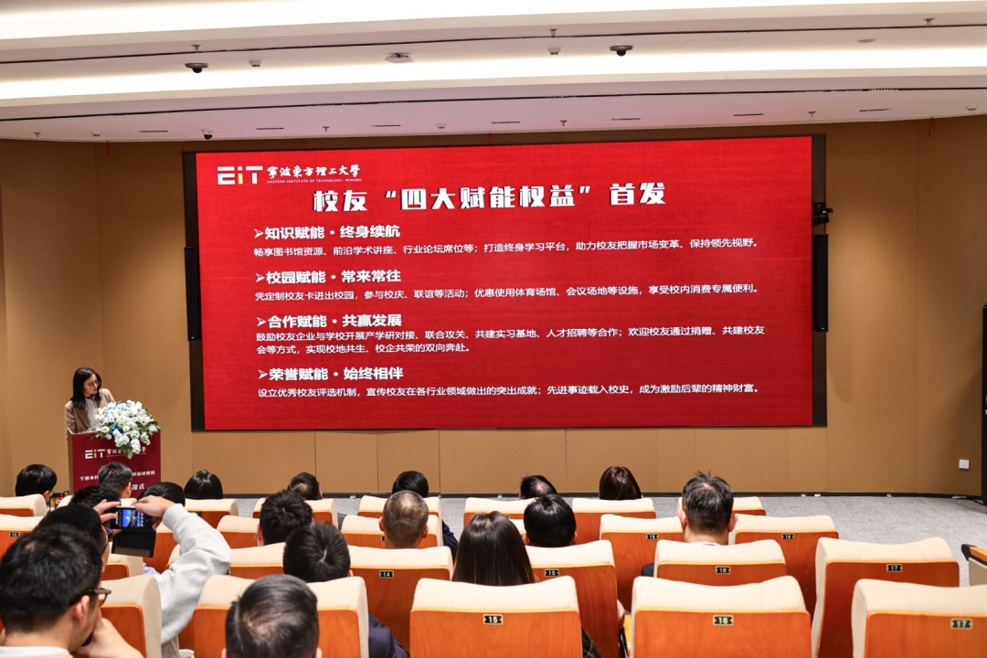 仪式上,东方理工正式发布首批校友“四大赋能权益”。围绕“知识、校园、合作、荣誉”四大维度,旨在构建一个不止于课堂的终身学习与合作生态。从开放前沿讲座、图书馆资源,到支持产学研、校企协同创新,东方理工正以最大的诚意,邀请校友成为大学发展的“最佳合伙人”。