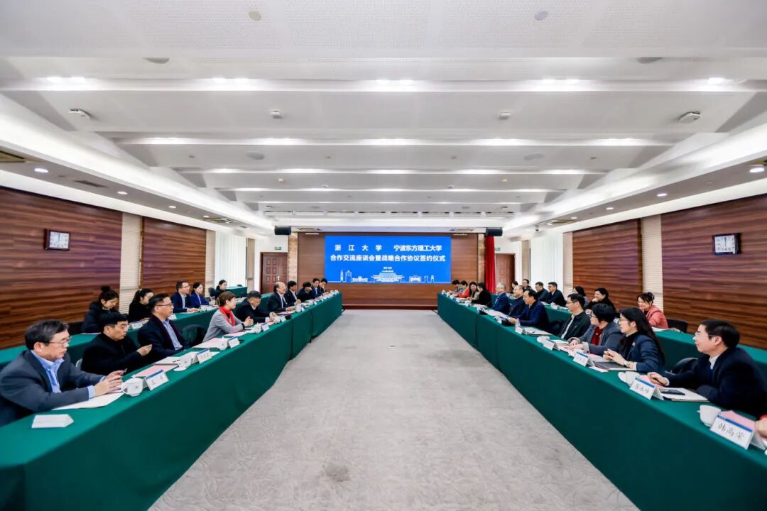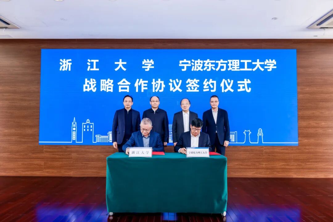 浙江大学党委副书记傅强、宁波东方理工大学副校长郑春苗代表双方签署战略合作协议。