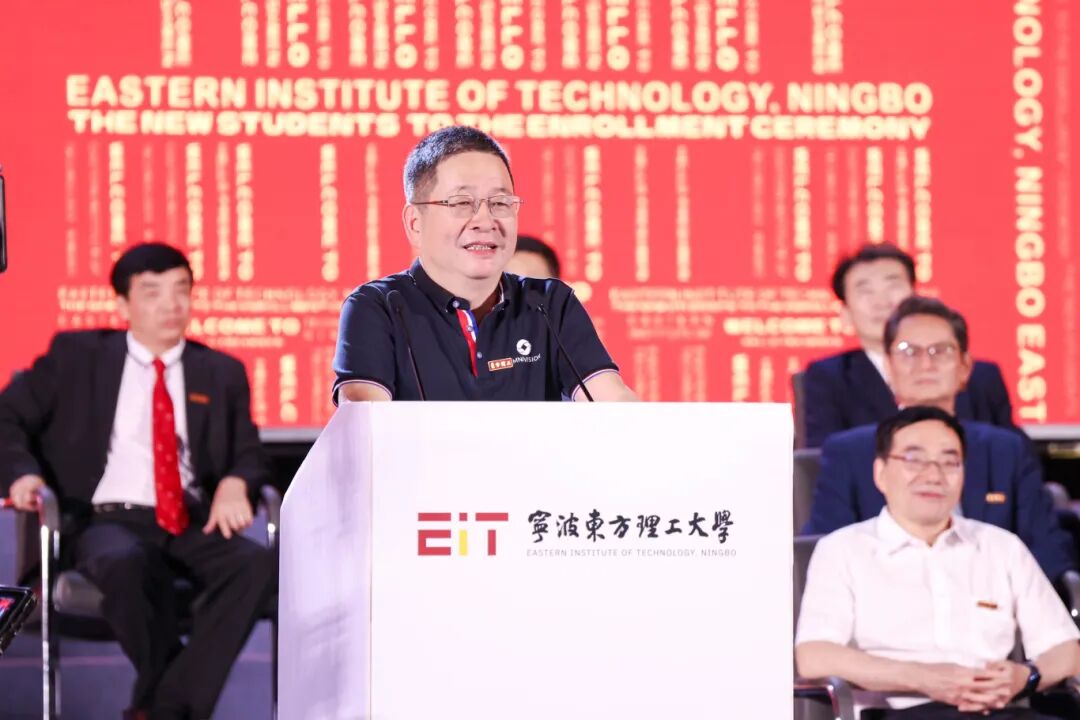 20206月,校董会主席虞仁荣先生提出“在家乡镇海捐资创办一所高水平大学”。如今宏伟蓝图成为美好现实。虞仁荣先生在发言中特别感谢宁波市委市政府及各界对学校的支持,并欢迎选择东方理工的师生家长。他寄语学生要“永远走在阳光的道路上”,做到“爱人如己、宽容团结”,同时鼓励学子培养独立思想、无惧挑战、敢于创新,并承诺将积极推动学校与企业、科研院所深度合作,为学生提供更广阔的实践平台和发展空间。