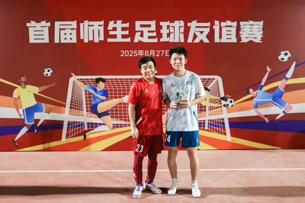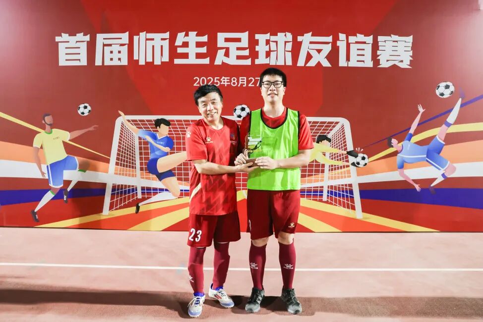 2025级本科新生朱俊豪获得“最佳球员”称号。我校讲席教授、四明书院院长、六院院士陈掌星为获奖球员颁发奖杯,并为球员们送上祝福:“愿你们在这片广阔的绿茵场上继续驰骋。享受每一次胜利和失败,我们全体老师将是你们最忠实的教练、队友和球迷。